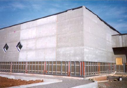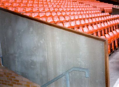 VERSAROC Cement-bonded particleboard installed in 16mm thickness (5/8 inch) as a wall lining at a sports stadium. Its durability and high impact resistance made it the material of choice for high abuse areas.